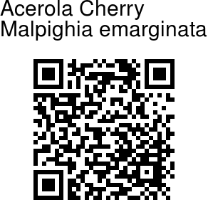 Acerola Cherry is an evergreen shrub or small tree with spreading branches on a short trunk. It is usually 2-3 m tall, but sometimes reaches 6 m in height. The leaves are simple, 2-8 cm long, 1-4 cm, and have short leaf-stalks. They are opposite, ovate to elliptic-lanceshaped, and have entire or wavy margins and blunt to rounded, and often notched at the tip. The plant is closely related to Barbados Cherry, which has leaves with pointed tips. Flowers are bisexual and 1-2 cm in diameter. They have five pale to deep pink or red fringed petals, 10 stamens, and six to 10 glands on the sepal-cup. The 3-5 flowers per inflorescence are stalkless or short-stalked in leaf-axils cymes. After three years, shrub produces significant numbers of bright red drupes 1-3 cm in diameter. Drupes contains three triangular seeds. The drupes are juicy and very high in vitamin C and other nutrients. Acerola Cherry is native to Mexico to N. Colombia.