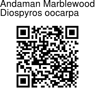 Andaman Marblewood is a tree up to 25 m tall. Bark is usually blackish brown in color and flakes are blaze brown. Branchlets are rounded, yellow-hairy when young. Leaves are simple, alternate, and distichous. Leaf-stalk is to 0.6-1.1 cm long, planoconvex in cross section, hairless. Blade is 5-12 x 3-7.5 cm,is narrow ovate to ovate, tip is pointed to long-pointed with blunt tip, where base is narrow, margin entire, leathery, hairless, drying brown. Midrib of the leaf is flat above. Secondary nerves may be 5-8, but not prominent, lower most pairs close, tertiary nerves are obscure. Flowers are unisexual, and dioecious. Inflorescence present,where male flowers in axillary sessile clusters, and are cream in color; where as female flowers 1-3, are axillary. Fruits are as berries. They are oblong-ovoid, 2.3 x 3.5 cm large, rugose; calyx is persistent. A fruit bear 1-seed per cell.