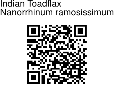 Botanical name:  Nanorrhinum ramosissimum    Family: Plantaginaceae (Plantain family) Synonyms: Linaria ramosissima, Kickxia ramosissima  Indian Toadflax is a wild Indian cousin of the common