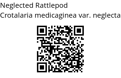 Botanical name:Crotalaria medicaginea var. neglectaFamily:Fabaceae (Pea family) Synonyms: Crotalaria neglecta