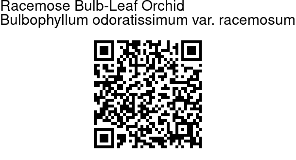 Botanical name:Bulbophyllum odoratissimum var. racemosumFamily:Orchidaceae (Orchid family) Synonyms: Bulbophyllum trichocephalum var. racemosum