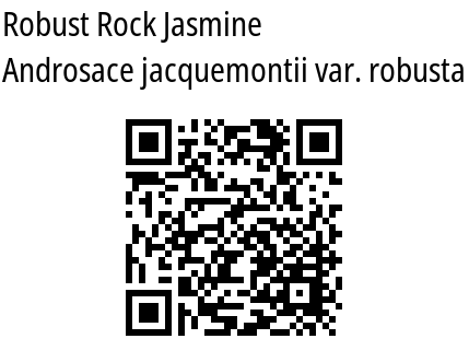 Botanical name:Androsace jacquemontii var. robustaFamily:Primulaceae (Primrose family) Synonyms: Androsace robusta, Androsace villosa var. robusta